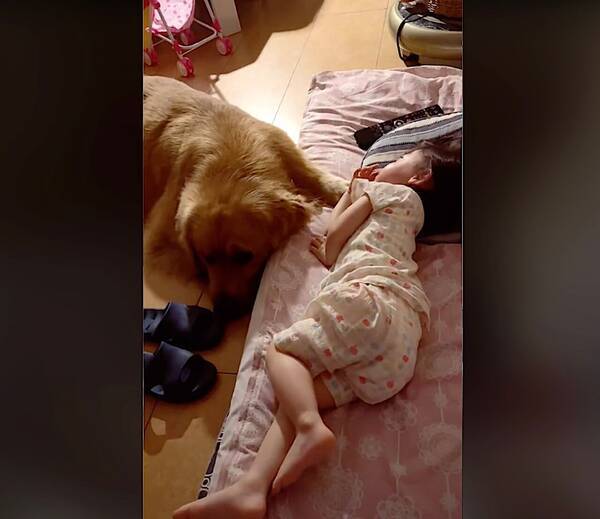 夜泣き中の女の子を放っておけず 泣き止むまで寄り添い続けた愛情深いゴールデン 動画 22年8月23日 エキサイトニュース